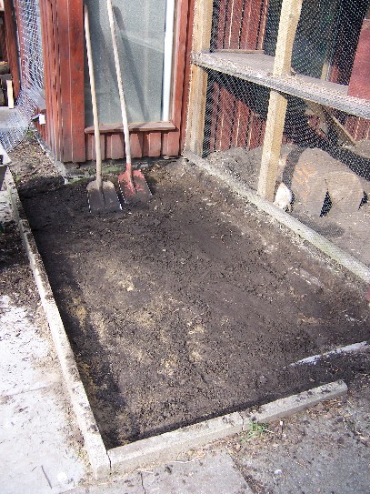 Leider hat dann natürlich Rasen keine Chance. Aus diesem Grund haben wir uns in diesem Jahr entschieden anzubauen. Circa 5-6 m² kommen dazu. Wieder haben wir eine Sohle gegossen. Diesmal habe ich die Arbeitsschritte fotografiert und will sie euch hier vorstellen. In einer ähnlichen Weise, kann man selbstverständlich auch ein normales Gehege bauen.