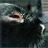 Anzeichen der Krankheit sind Niesen, Nasenausfluß (erst wäßrig, später eitrig), Bindehaut-entzündung, Fieber und Teilnahmslosig-keit. Wird die Krankheit nicht behandelt, kann sie innerhalb einer Woche zum Tod führen. Zudem können die inneren Atemorgane angegriffen werden, wodurch der Schnupfen chronisch wird